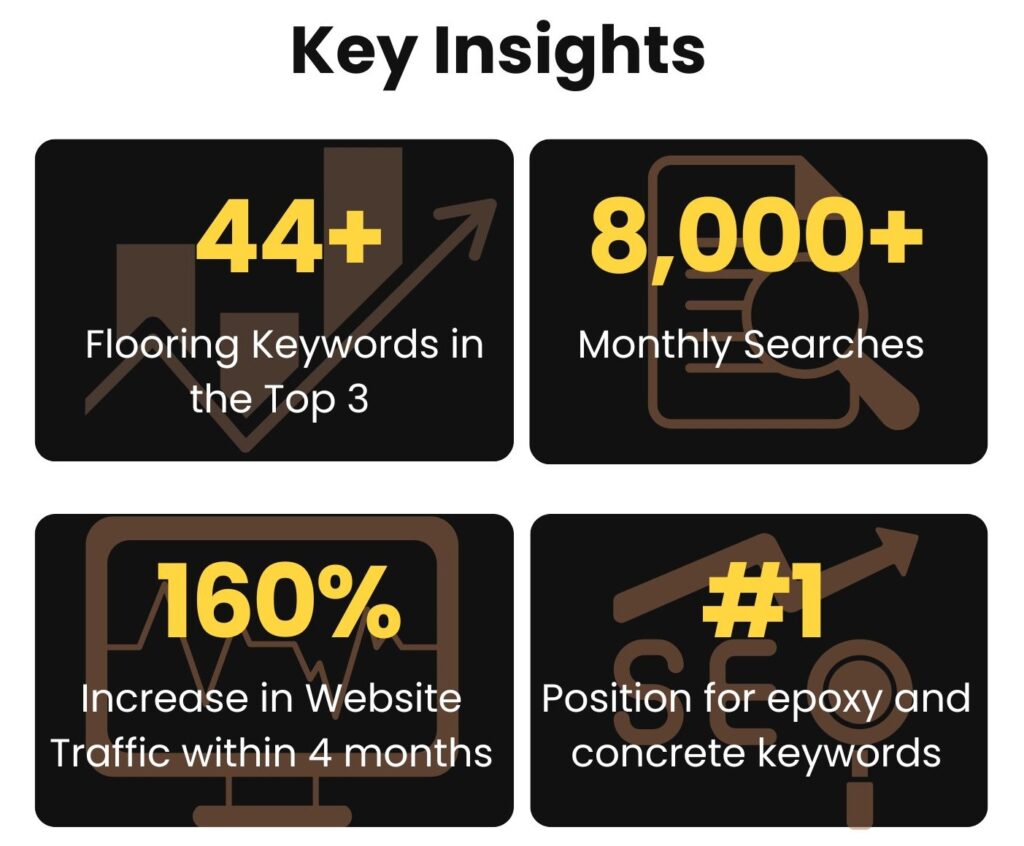 We built a complete PPC framework optimized for lead generation, creating tightly themed ad groups targeting epoxy and commercial flooring services. Advanced conversion tracking was implemented across forms and phone calls, ensuring every lead was traceable and measurable.