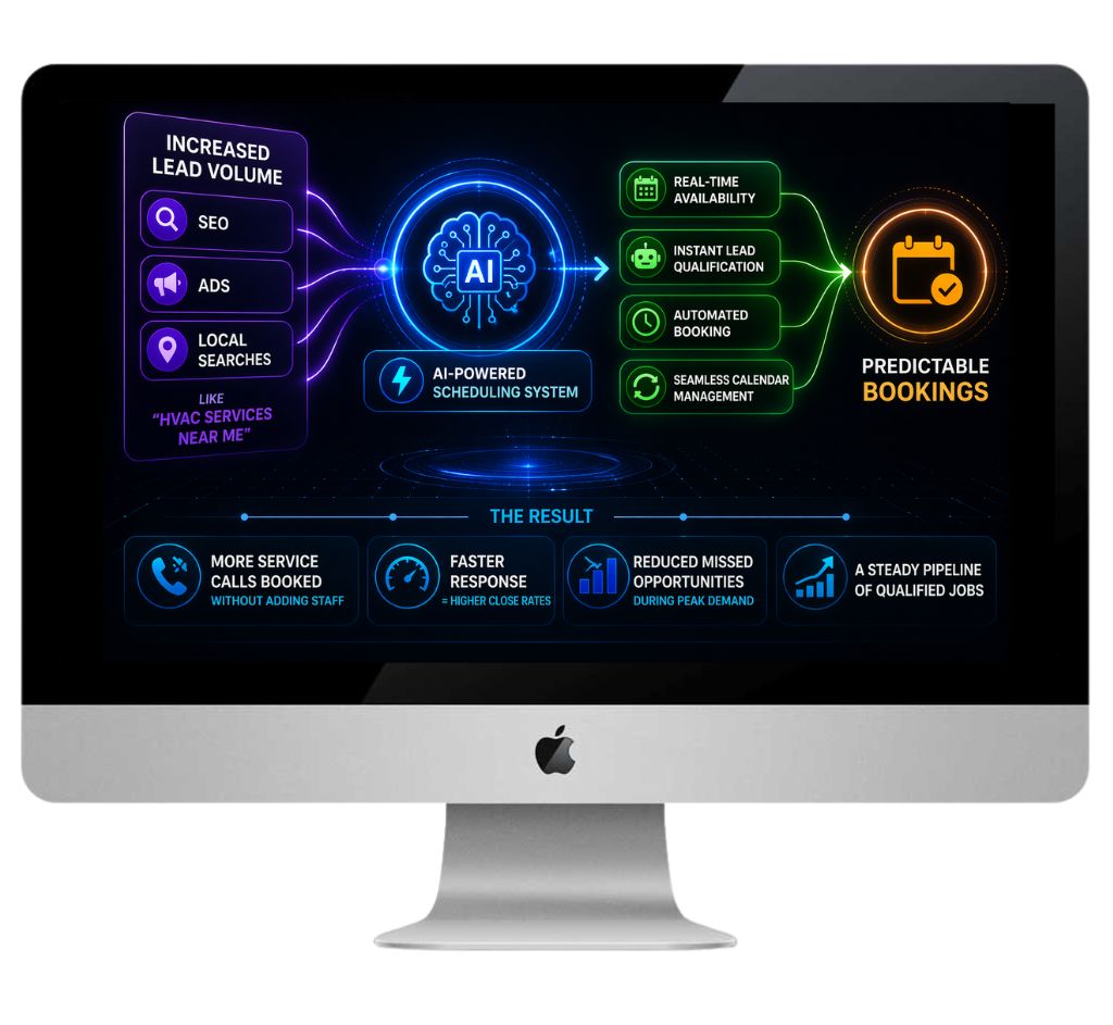 As lead volume increases – from SEO, ads, or local searches like “HVAC services near me” – the system scales instantly.